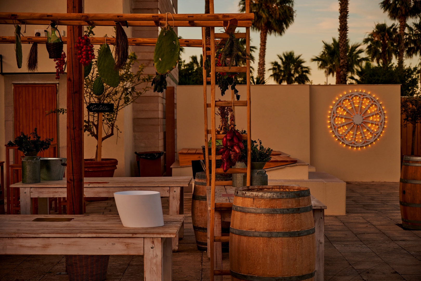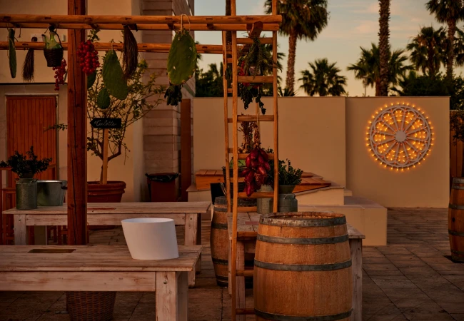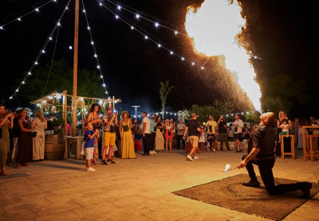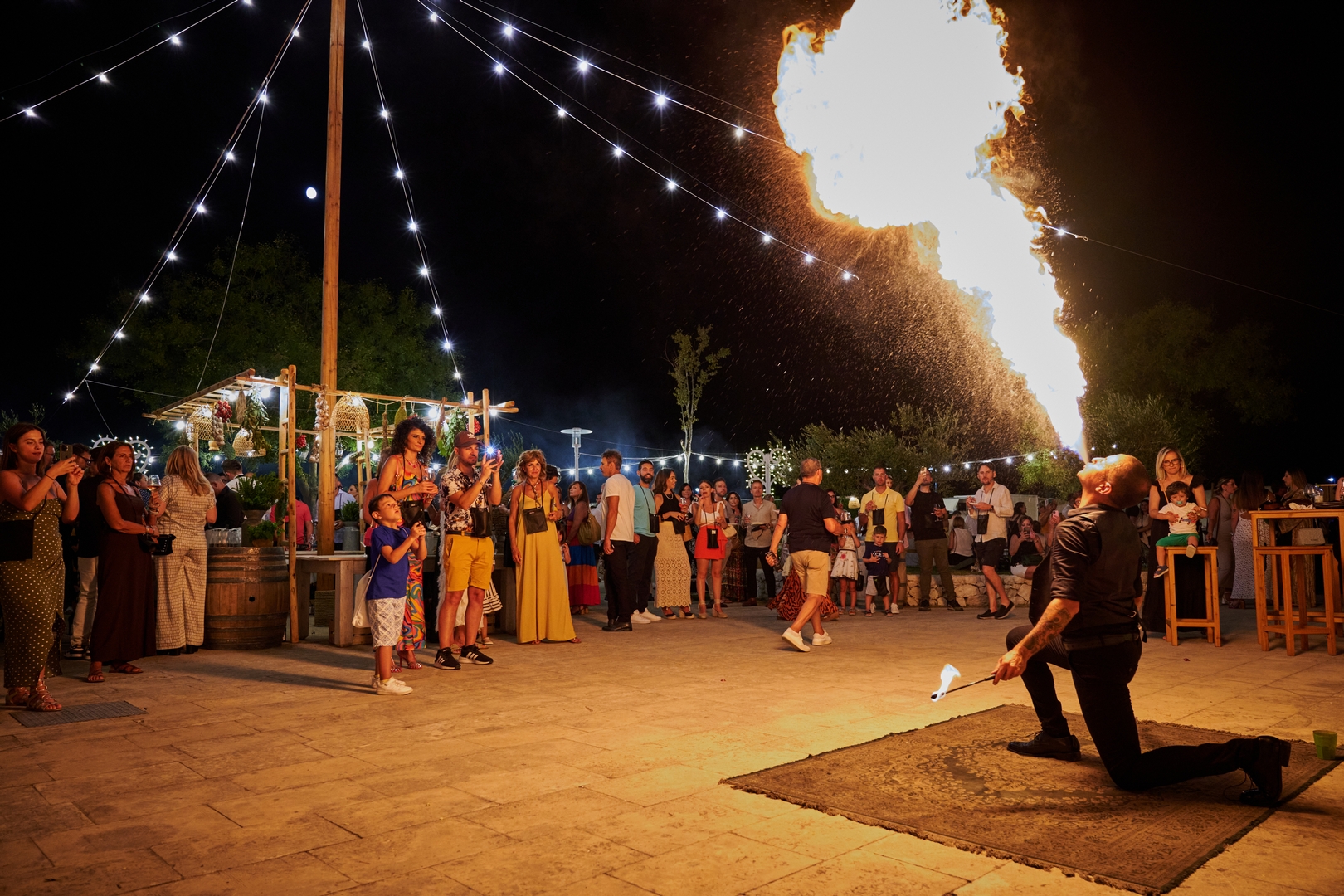 Il punto focale del Matrimonio nel Borgo è senza dubbio la nuovissima Piazza del Borgo, uno spazio all'aperto progettato per accogliere i momenti più importanti della giornata: dall'aperitivo di benvenuto, alla cena sotto le stelle, fino alla festa finale. La piazza, con la sua disposizione versatile e il suo design che richiama i borghi storici pugliesi, offre uno sfondo perfetto per ogni fase del ricevimento. Qui, gli ospiti possono rilassarsi e godere delle bellezze del luogo, accompagnati dalla musica dal vivo e dalle esibizioni di artisti e musicisti folk che arricchiscono l'atmosfera con note tipiche e danze coinvolgenti.